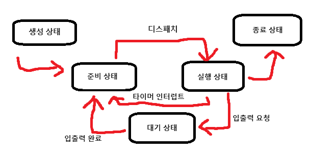 | 준비 상태 | - 당장이라도 CPU를 할당 받아 실행할 수 있지만 자신이 차례가 아니기에 기다리는 상태. - 자신의 차례가 된다면 실행상태로 됨(== 디스패치) |